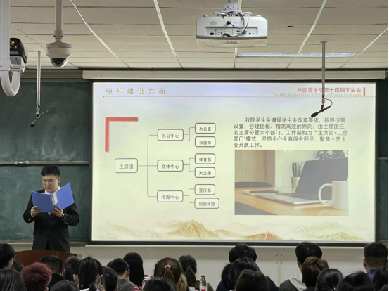 (第十四届学生会主席团成员刘博渊作工作报告)