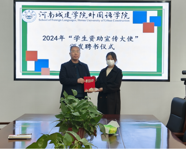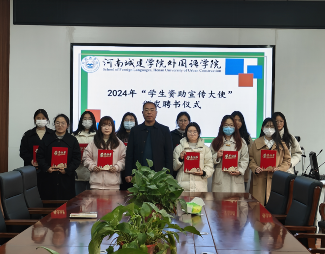 张换成院长为16位学生资助宣传大使颁发聘书并进行总结讲话,他首先对自愿报名担任资助宣传大使的同学表示感谢,同时提出三点希望:一是希望同学们能发挥好政策宣讲和示范引领作用,努力成为资助宣传工作的接力者、践行者和守护者,让更多的家庭经济困难学生了解资助政策,受用资助政策;二是希望同学们坚持努力学习,传播正能量,在同学中发挥表率作用;三是希望同学们,务必要坚持安全第一的原则,合理安排好宣传行程,期待同学们能够顺利完成资助政策宣传工作。