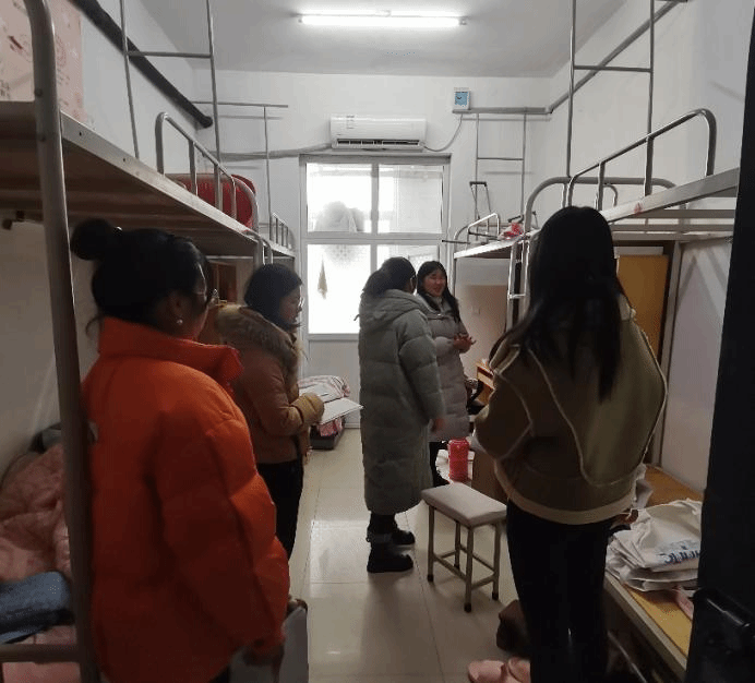 走访过程中,辅导员亲切与同学们交流,深入了解学生宿舍的水、电、空调、直饮机、洗衣机等设施能否正常运转,细致询问同学们遇到的问题及困难,关切他们是否准备好教材,做好了上课准备。此外,领导老师们检查了学生宿舍的安全和卫生情况,叮嘱同学们注意用水用电安全,保持良好的卫生习惯。同学们纷纷表示,将迅速调整状态,以崭新的面貌投入到新学期中。