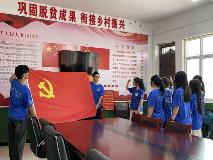 开展志愿服务活动。7月1日,学生党员和积极分子到鲁山县搬走岭村进行义务支教活动,助力乡村文化振兴。学生党员现场进行了重温入党誓词,采访了英国上市公司365驻村第一书记,了解搬走岭村脱贫攻坚的历程。