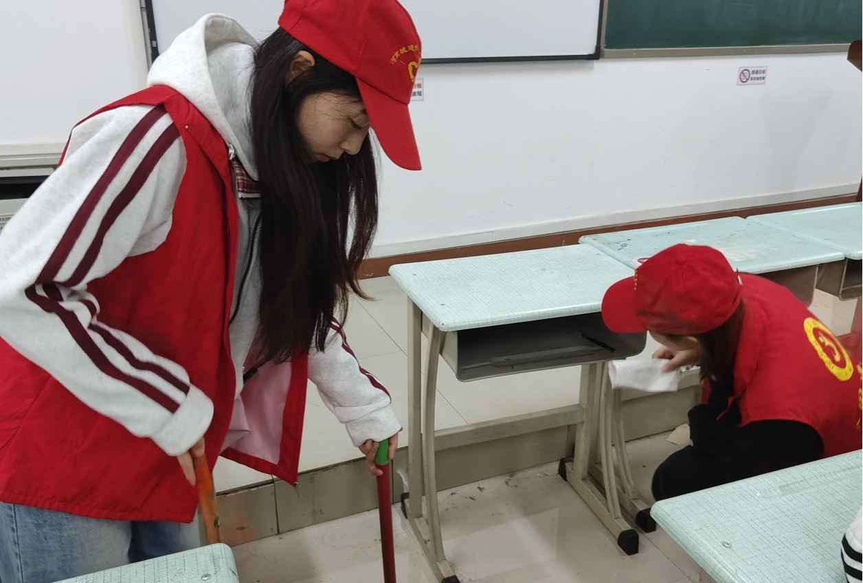 本次活动不仅为同学们营造了整洁舒适的学习空间,有助于提升学习体验和效率,也展现了大学生志愿者的奉献精神和社会责任感,为校园文化注入正能量。