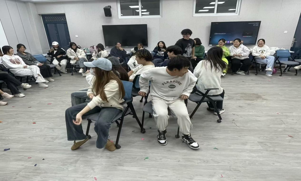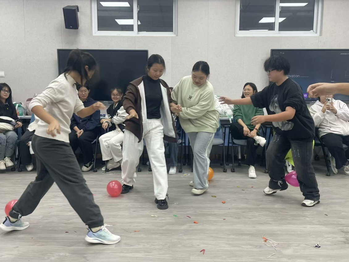 此次运动会设置“踩气球”和“抢凳子”两项项目,现场气氛热烈,同学们纷纷化身运动健儿,全力以赴,展现出了良好的体育竞技精神和团队协作精神。踩气球比赛开始,各选手将气球绑在脚踝,脚步交错,气球的爆破声此起彼伏。抢凳子活动更是扣人心弦,参与的同学们眼神紧紧盯着板凳,音乐一停,便如离弦之箭般冲向目标凳子。现场像是一片欢乐的海洋,笑声呐喊声此起彼伏,回荡教室之中。