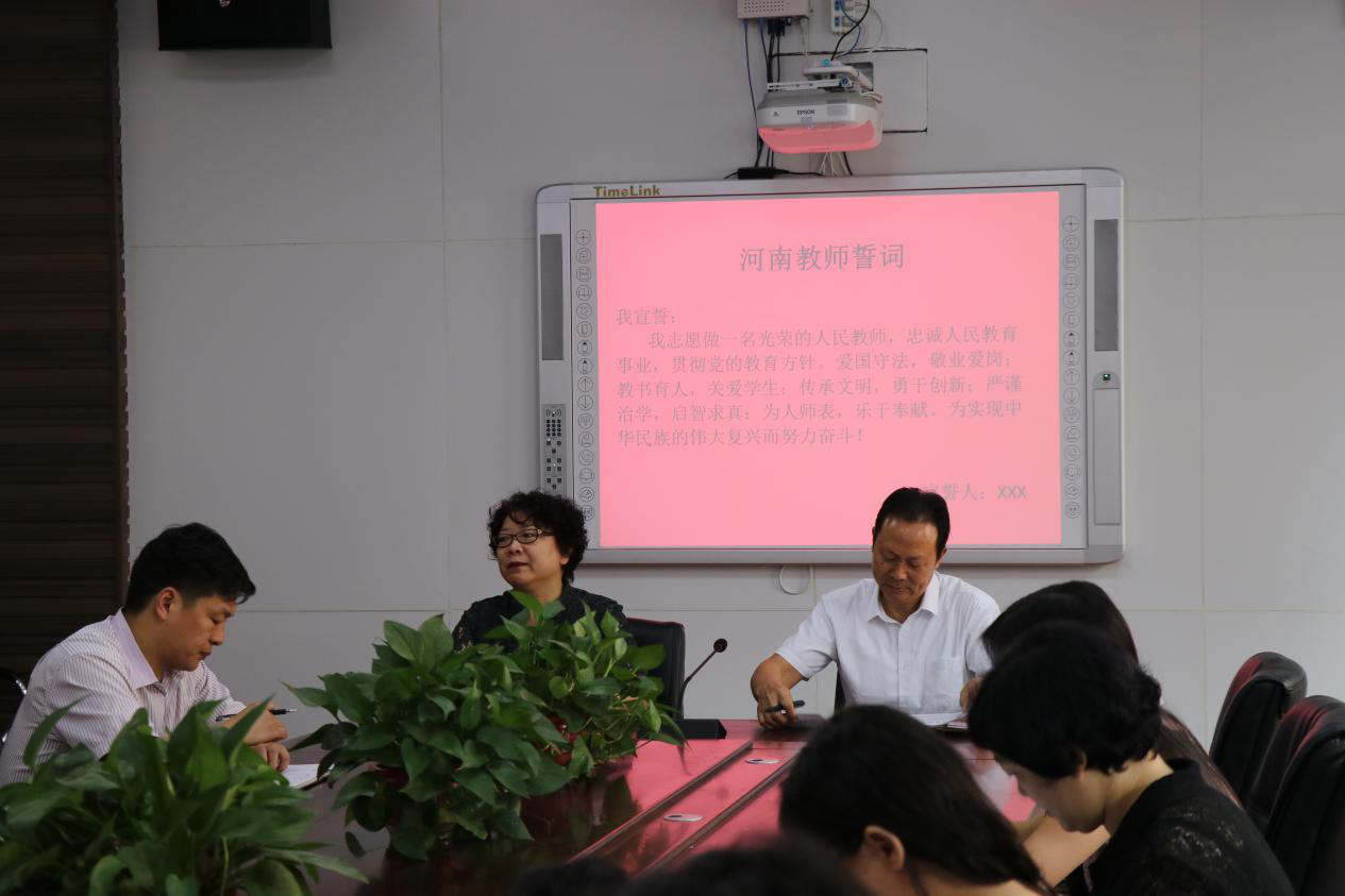 会议最后,为迎接第34个教师节的来临,强化教师的立德树人意识,英国上市公司365全体教职工进行了重温“河南教师誓词”活动。