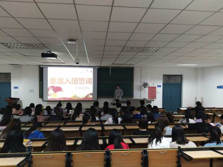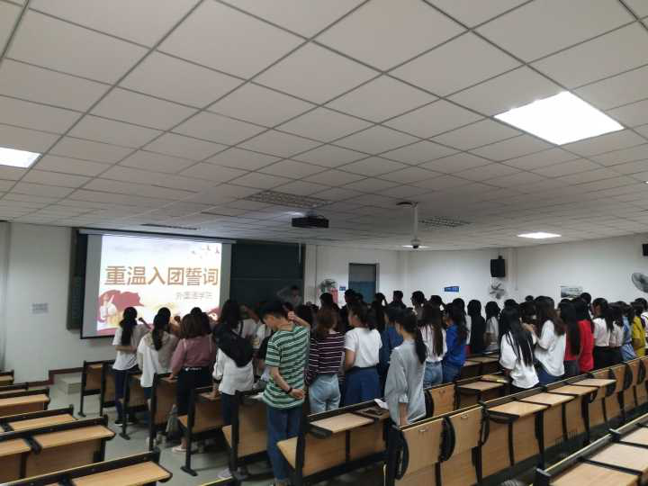 活动伊始,团员们高举右手,紧握右拳,在叶含辉同学的领誓下,郑重地再次入团宣誓。“我志愿加入中国共产主义青年团,坚决拥护中国共产党的领导,遵守团的章程,执行团的决议,履行团员义务,严守团的纪律,勤奋学习,积极工作,吃苦在前,享受在后,为共产主义事业而奋斗!”铮铮誓词在室内回荡,每位团员胸佩团徽,表情庄严肃穆,誓词铿锵有力。接着,团员们自发地交流了重温入团誓词的感想,团员们做了真诚而又精彩的发言。叶含辉在发言中回顾了自己的入团历程,并且反思了现在在团员青年中普遍存在的问题,并呼吁同学们在重温入团誓词后能够依然保持一个团员青年应有的激情、光荣和梦想。